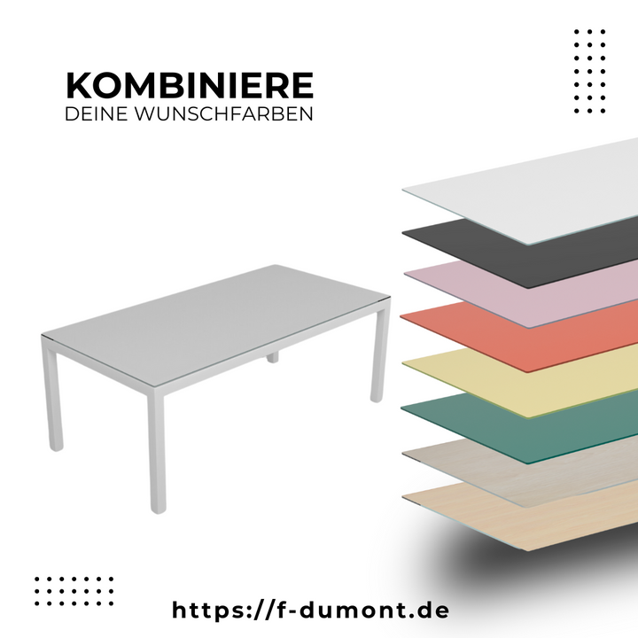 Konfigurieren Sie sich noch heute Ihren eigenen Tisch und wählen Sie dabei aus den verschiedenen Trendfarben 2025.